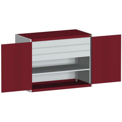 Dílenská skříň se zásuvkami Bott Cubio 160, 100 x 130 x 65 cm, 1 police, 3 zásuvky, šedá-červená