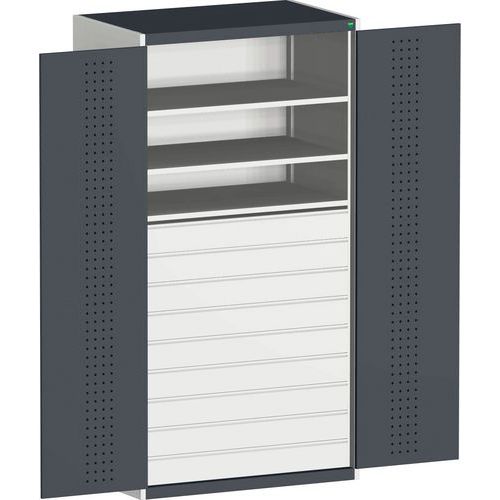 Dílenská skříň se zásuvkami Bott Cubio 160, 200 x 130 x 65 cm, 3 police, 9 zásuvek, šedá-antracit