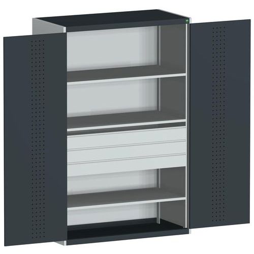 Dílenská skříň se zásuvkami Bott Cubio 160, 200 x 130 x 65 cm, 3 police, 3 zásuvky, šedá-antracit