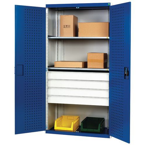 - Vyztužené křídlové dveře s perforovanou vnitřní stranou pro uložení nářadí.