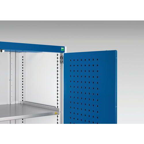 - Vyztužené křídlové dveře s perforovanou vnitřní stranou pro uložení nářadí.