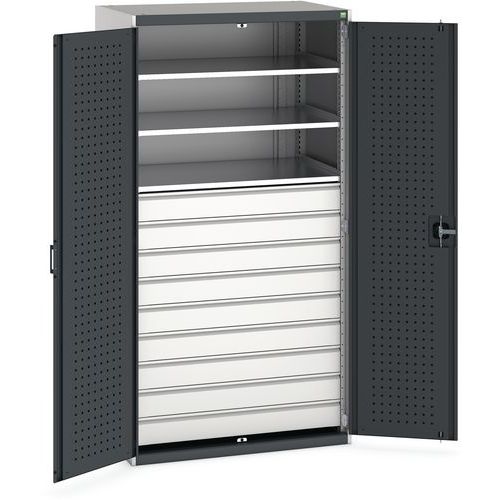 Dílenská skříň se zásuvkami Bott Cubio, 200 x 105 x 65 cm, 3 police, 9 zásuvek, šedá-antracit