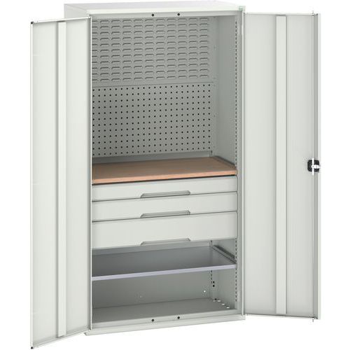 Dílenská skříň se zásuvkami Bott Verso, 200 x 105 x 55 cm, 1 police, 3 zásuvky, šedá-šedá