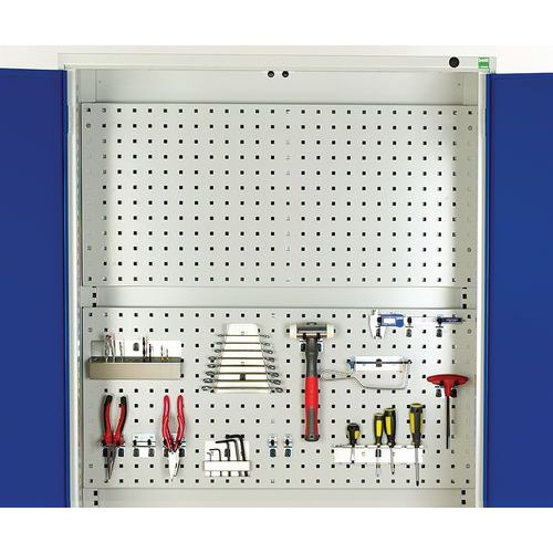 - Zadní stěna je perforovaná pro umístění držáků nářadí a pro zavěšení plastových boxů.