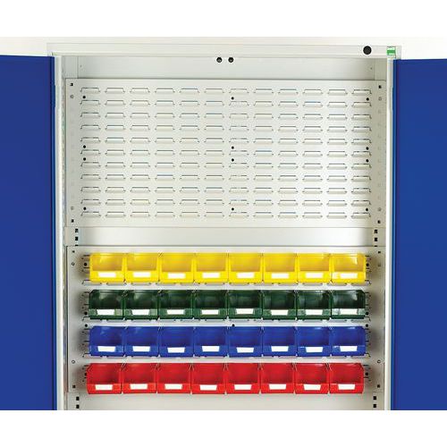 - Zadní stěna je perforovaná pro umístění držáků nářadí a pro zavěšení plastových boxů.