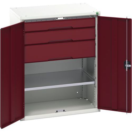 Dílenská skříň se zásuvkami Bott Verso, 100 x 80 x 55 cm, 1 police, 3 zásuvky, šedá-červená
