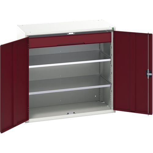 Dílenská skříň se zásuvkami Bott Verso, 100 x 105 x 55 cm, 2 police, 1 zásuvka, šedá-červená