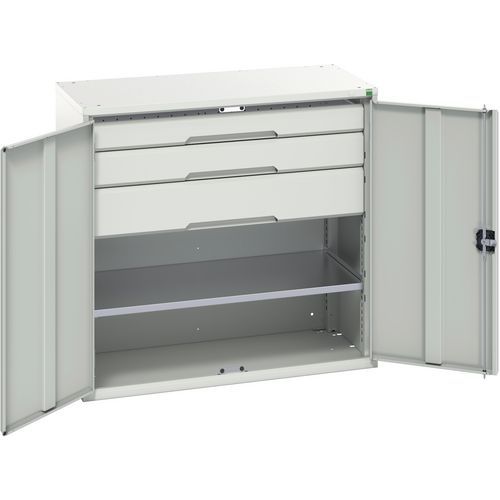 Dílenská skříň se zásuvkami Bott Verso, 100 x 105 x 55 cm, 1 police, 3 zásuvky, šedá-šedá