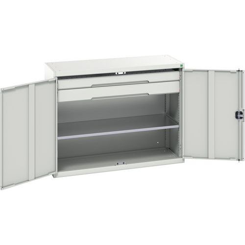 Dílenská skříň se zásuvkami Bott Verso, 100 x 130 x 55 cm, 1 police, 2 zásuvky, šedá-šedá