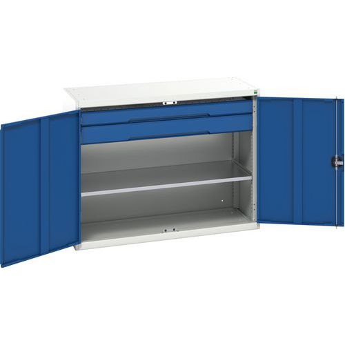 Dílenská skříň se zásuvkami Bott Verso, 100 x 130 x 55 cm, 1 police, 2 zásuvky, šedá-modrá