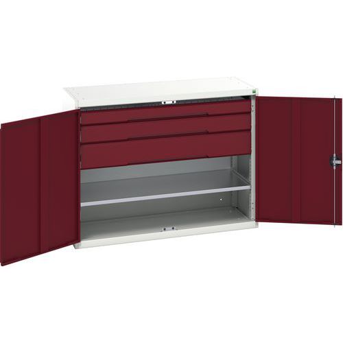 Dílenská skříň se zásuvkami Bott Verso, 100 x 130 x 55 cm, 1 police, 3 zásuvky, šedá-červená
