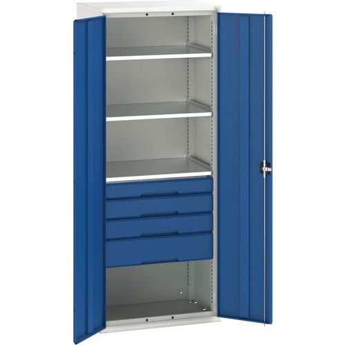 Dílenská skříň se zásuvkami Bott Verso, 200 x 80 x 55 cm, 3 police, 4 zásuvky, šedá-modrá