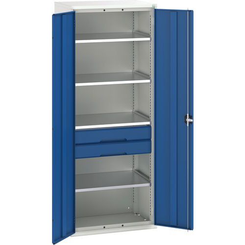 Dílenská skříň se zásuvkami Bott Verso, 200 x 80 x 55 cm, 4 police, 2 zásuvky, šedá-modrá