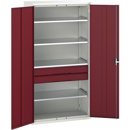 Dílenská skříň se zásuvkami Bott Verso, 200 x 105 x 55 cm, 4 police, 2 zásuvky, šedá-červená