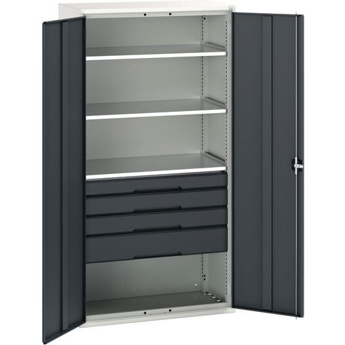 Dílenská skříň se zásuvkami Bott Verso, 200 x 105 x 55 cm, 3 police, 4 zásuvky, šedá-antracit