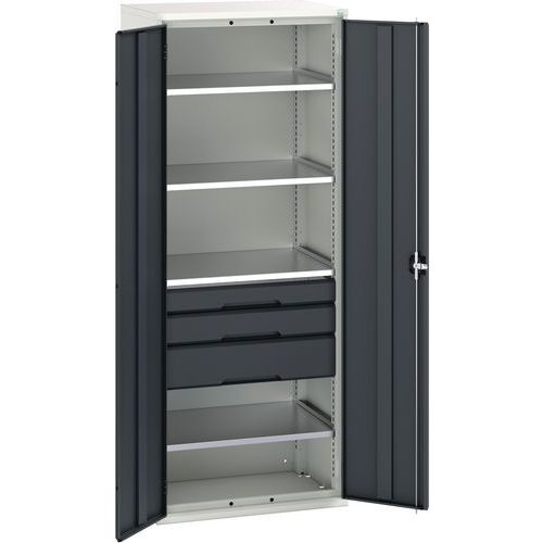 Dílenská skříň se zásuvkami Bott Verso, 200 x 80 x 55 cm, 4 police, 3 zásuvky, šedá-antracit