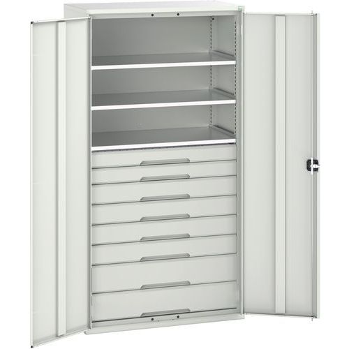 Dílenská skříň se zásuvkami Bott Verso, 200 x 105 x 55 cm, 3 police, 8 zásuvek, šedá-šedá