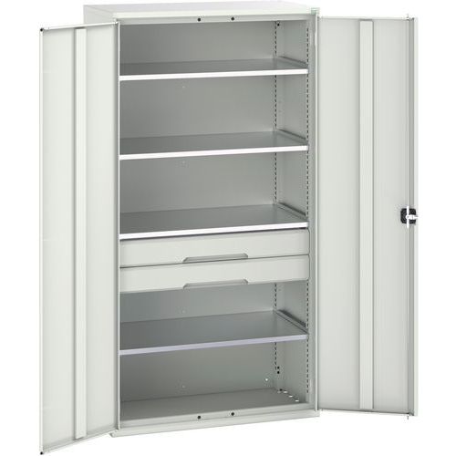 Dílenská skříň se zásuvkami Bott Verso, 200 x 105 x 55 cm, 4 police, 2 zásuvky, šedá-šedá