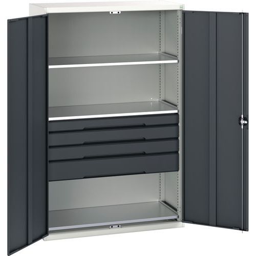 Dílenská skříň se zásuvkami Bott Verso, 200 x 130 x 55 cm, 3 police, 4 zásuvky, šedá-antracit