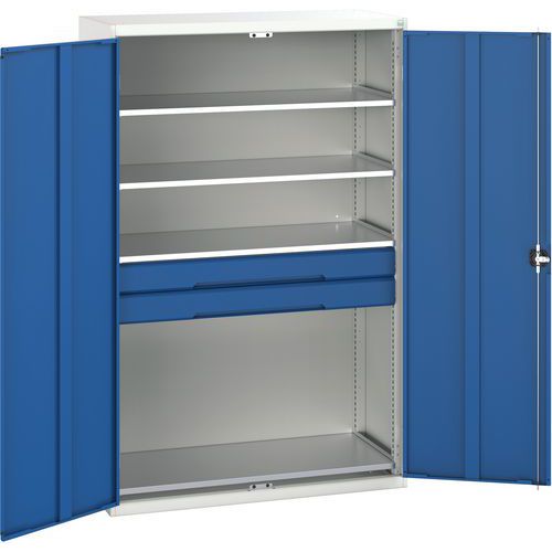 Dílenská skříň se zásuvkami Bott Verso, 200 x 130 x 55 cm, 4 police, 2 zásuvky, šedá-modrá