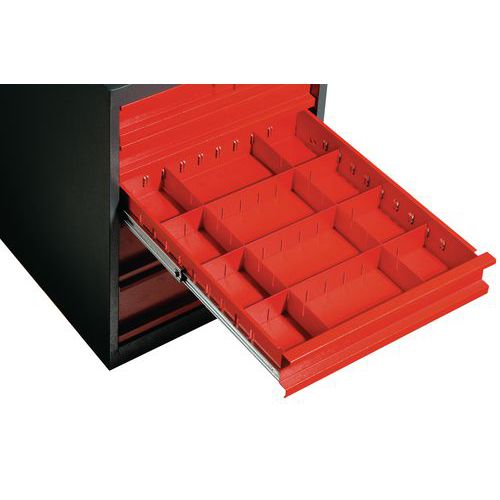 Vnitřní rozměry zásuvek v x š x h: 3 zásuvky 90 x 435 x 524 mm, 2 zásuvky 167 x 435 x 524 mm.