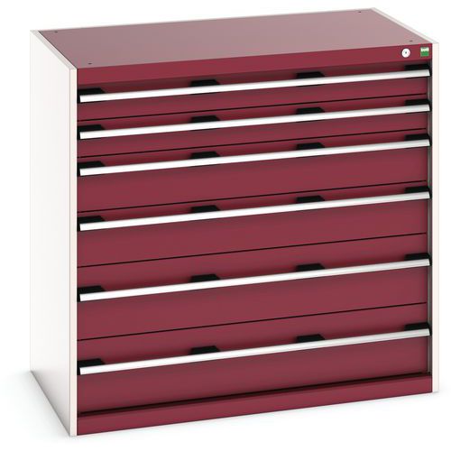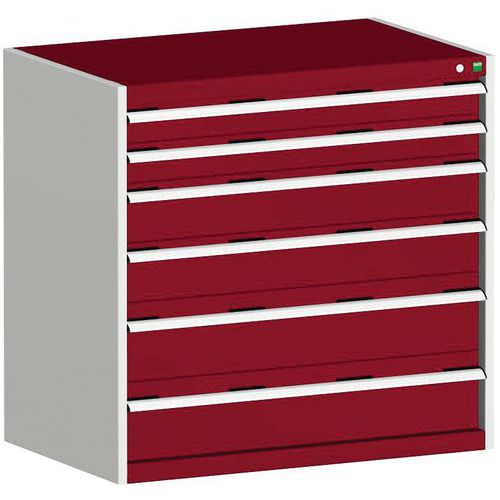 Dílenská zásuvková skříň Bott Cubio, 100 x 105 x 65 cm, 6 zásuvek, šedá-červená