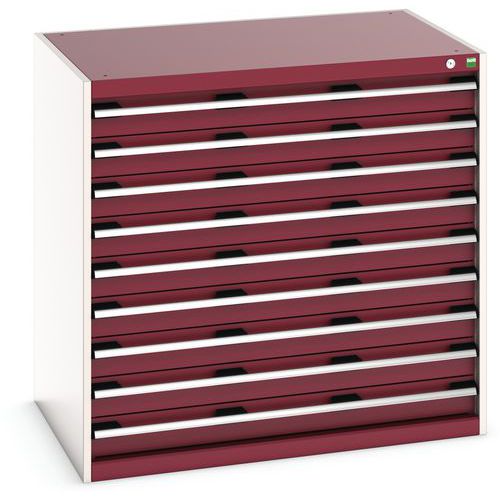 Dílenská zásuvková skříň Bott Cubio, 100 x 105 x 75 cm, 9 zásuvek, šedá-červená