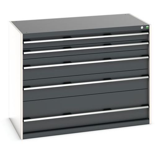 Dílenská zásuvková skříň Bott Cubio, 100 x 130 x 75 cm, 5 zásuvek, šedá-antracit