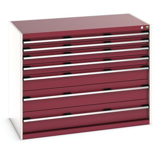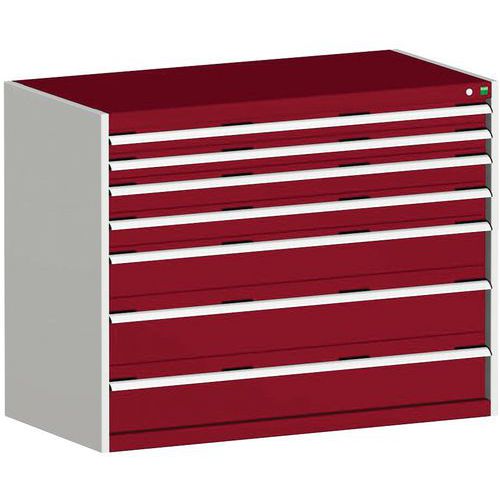 Dílenská zásuvková skříň Bott Cubio, 100 x 130 x 75 cm, 7 zásuvek, šedá-červená