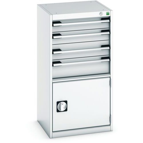 Dílenská zásuvková skříň Bott Cubio, 100 x 52,5 x 52,5 cm, 4 zásuvky, 1 skříňka, šedá-šedá