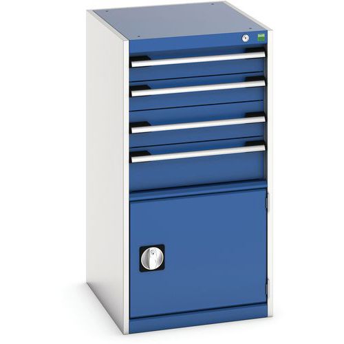 Dílenská zásuvková skříň Bott Cubio, 100 x 52,5 x 65 cm, 4 zásuvky, 1 skříňka, šedá-modrá