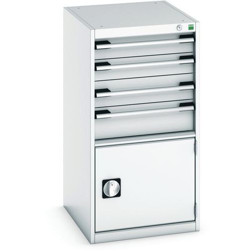 Dílenské zásuvkové skříně Bott Cubio, 100 x 52,5 x 52,5-65 cm, 4 zásuvky, 1 skříňka