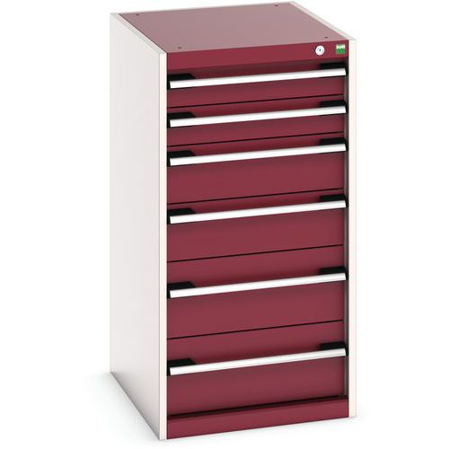 Dílenská zásuvková skříň Bott Cubio, 100 x 52,5 x 65 cm, 6 zásuvek, šedá-červená