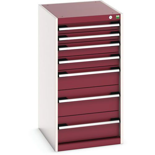Dílenská zásuvková skříň Bott Cubio, 100 x 52,5 x 65 cm, 7 zásuvek, šedá-červená