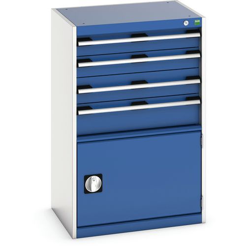 Dílenská zásuvková skříň Bott Cubio, 100 x 65 x 52,5 cm, 4 zásuvky, 1 skříňka, šedá-modrá