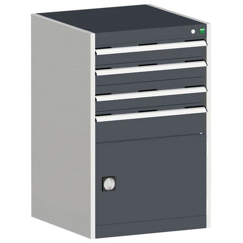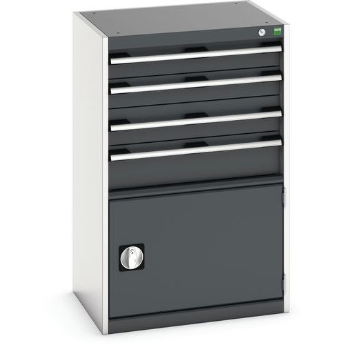 Dílenská zásuvková skříň Bott Cubio, 100 x 65 x 52,5 cm, 4 zásuvky, 1 skříňka, šedá-antracit