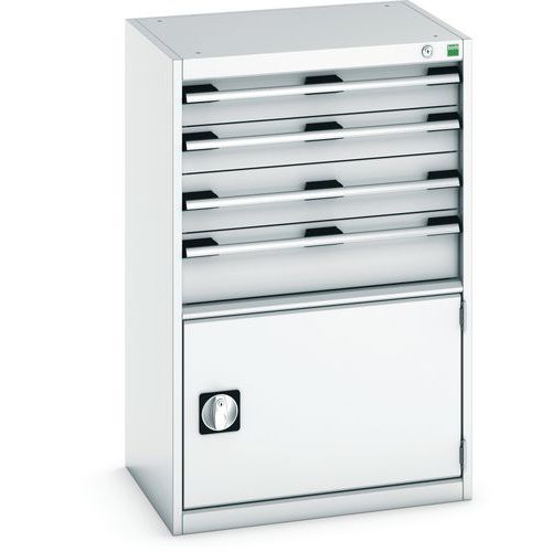 Dílenská zásuvková skříň Bott Cubio, 100 x 65 x 52,5 cm, 4 zásuvky, 1 skříňka, šedá-šedá