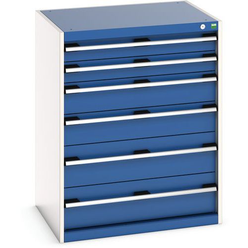Dílenská zásuvková skříň Bott Cubio, 100 x 80 x 65 cm, 6 zásuvek, šedá-modrá