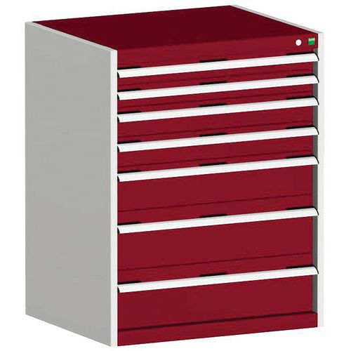 Dílenská zásuvková skříň Bott Cubio, 100 x 80 x 52,5 cm, 7 zásuvek, šedá-červená