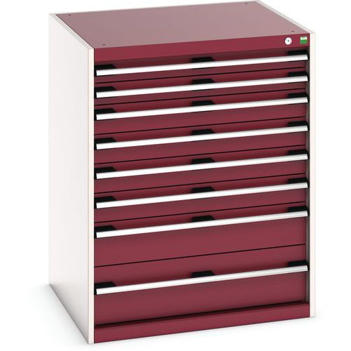Dílenská zásuvková skříň Bott Cubio, 100 x 80 x 75 cm, 8 zásuvek, šedá-červená
