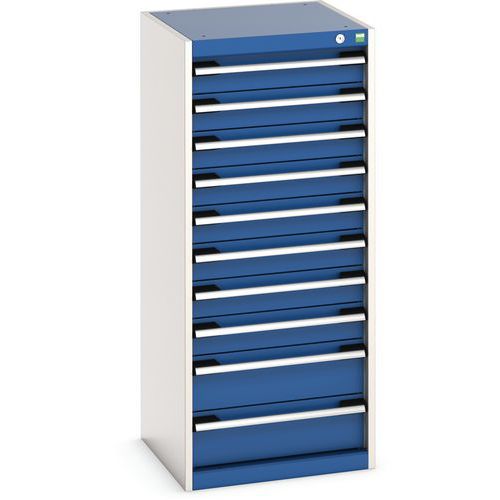 Dílenská zásuvková skříň Bott Cubio, 120 x 52,5 x 52,5 cm, 10 zásuvek, šedá-modrá