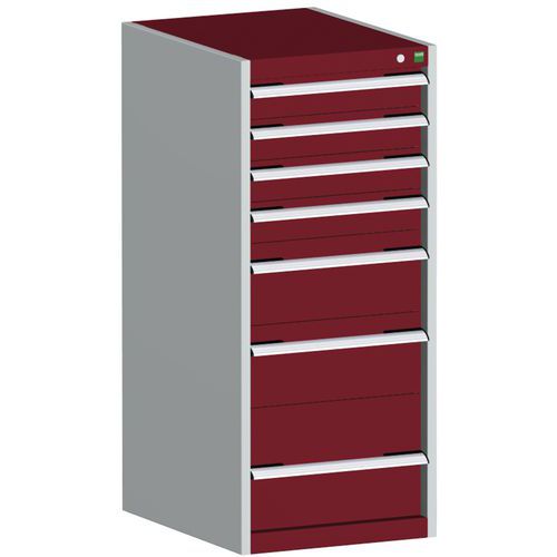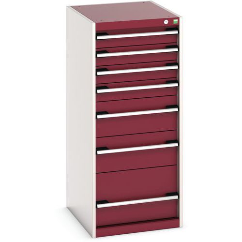 Dílenská zásuvková skříň Bott Cubio, 120 x 52,5 x 65 cm, 7 zásuvek, šedá-červená