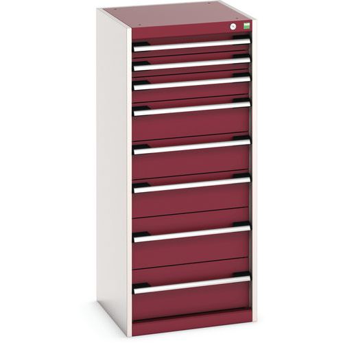 Dílenská zásuvková skříň Bott Cubio, 120 x 52,5 x 52,5 cm, 8 zásuvek, šedá-červená