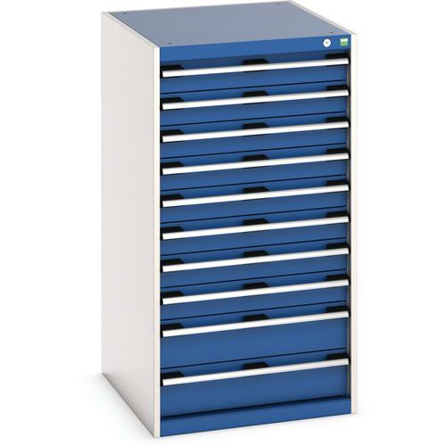 Dílenská zásuvková skříň Bott Cubio, 120 x 65 x 75 cm, 10 zásuvek, šedá-modrá