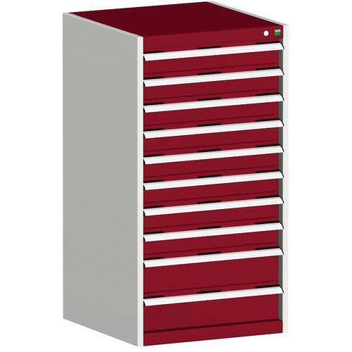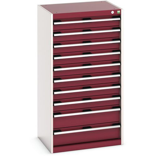 Dílenská zásuvková skříň Bott Cubio, 120 x 65 x 52,5 cm, 10 zásuvek, šedá-červená
