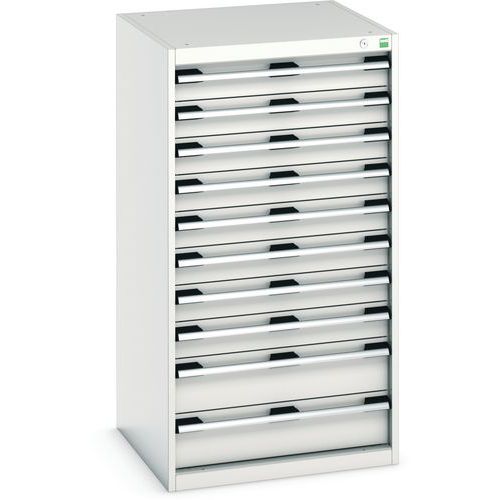 Dílenská zásuvková skříň Bott Cubio, 120 x 65 x 65 cm, 10 zásuvek, šedá-šedá
