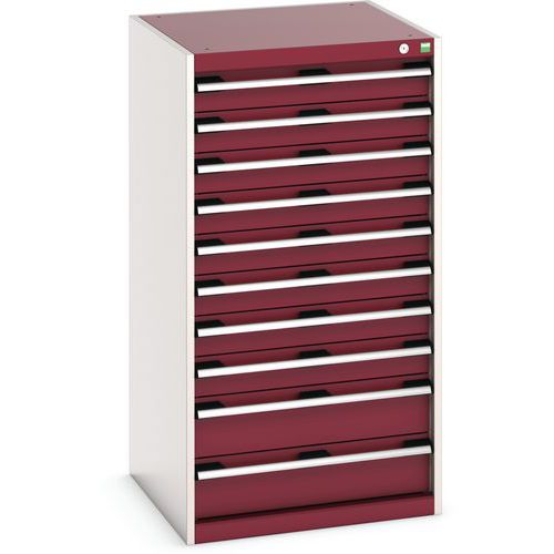 Dílenská zásuvková skříň Bott Cubio, 120 x 65 x 65 cm, 10 zásuvek, šedá-červená