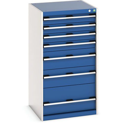 Dílenská zásuvková skříň Bott Cubio, 120 x 65 x 65 cm, 7 zásuvek, šedá-modrá