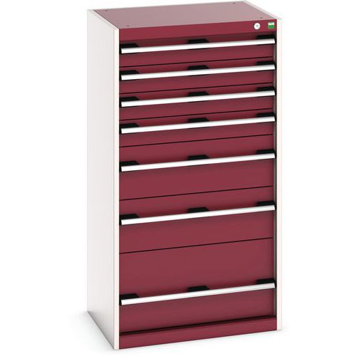 Dílenská zásuvková skříň Bott Cubio, 120 x 65 x 52,5 cm, 7 zásuvek, šedá-červená
