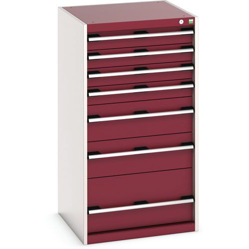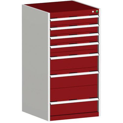 Dílenská zásuvková skříň Bott Cubio, 120 x 65 x 65 cm, 7 zásuvek, šedá-červená